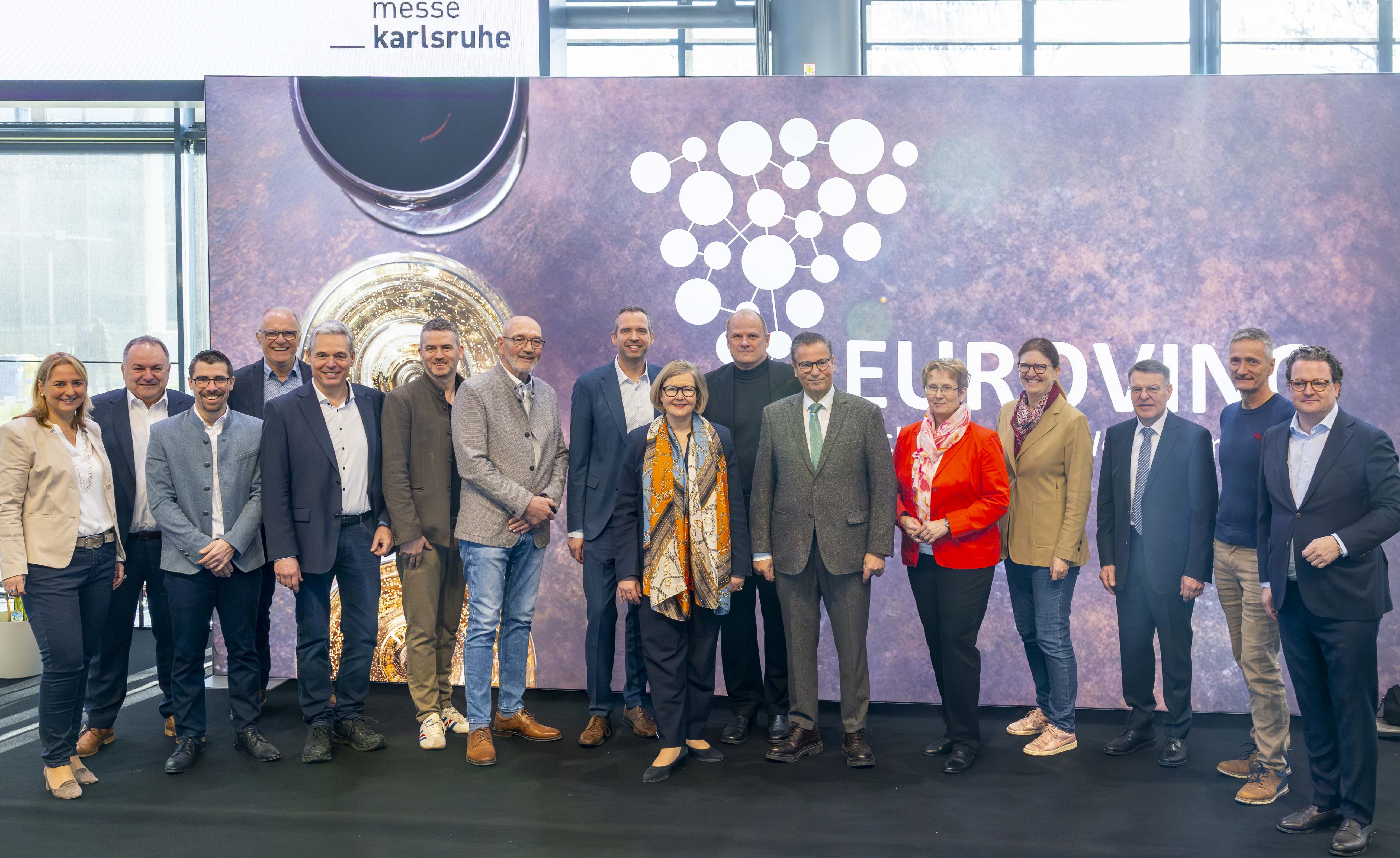 Neben den Formaten fürs Fachpublikum hielt die EUROVINO auch in diesem Jahr erneut Raum für Begegnung und intensiven Austausch für Vertreterinnen und Vertreter aus Politik und der Weinbranche bereit. Beim bereits zum zweiten Mal von der Messe Karlsruhe initiierten Spitzengespräch und dem anschließenden Rundgang über die Messe ging Peter Hauk MdL, Minister für Ernährung, Ländlichen Raum und Verbraucherschutz Baden-Württemberg, und zugleich Schirmherr der EUROVINO 2026 in den Dialog mit Verbänden, Ausstellenden und Medienschaffenden. Im Anschluss an den Rundgang bot die EUROVINO zudem eine Plattform für ein Pressegespräch des Ministeriums für Ernährung, Ländlichen Raum und Verbraucherschutz (MLR). Dabei stellte Minister Hauk gemeinsam mit Dietrich Rembold, Präsident des Weinbauverbands Württemberg, und Holger Klein, Geschäftsführer des Badischen Weinbauverbands, ein neues Förderprojekt für den Weinbau vor.